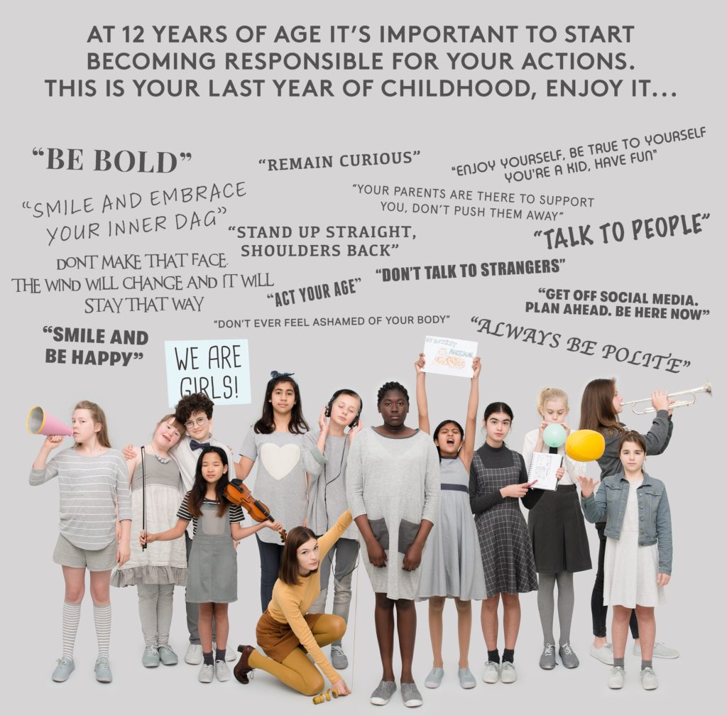 In the chapter “taming a 12-year-old”, the female participants respond in interpretative dance to the mixed messages (and often unconscious bias) they receive by friends, family and the media in everyday life.