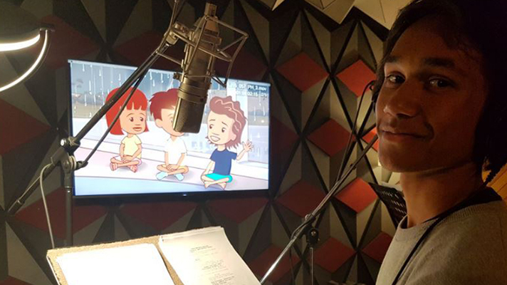 Tjiirdm McGuire recording ‘Levi’ dialogue at Cue Sound (2019).